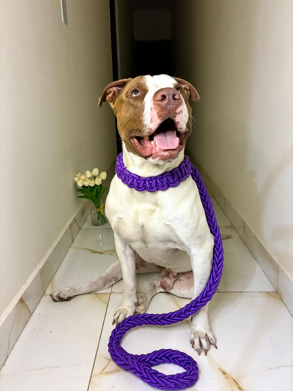 Coleira com Guia Trançada Artesanal para Cães de Médio a Grande Porte